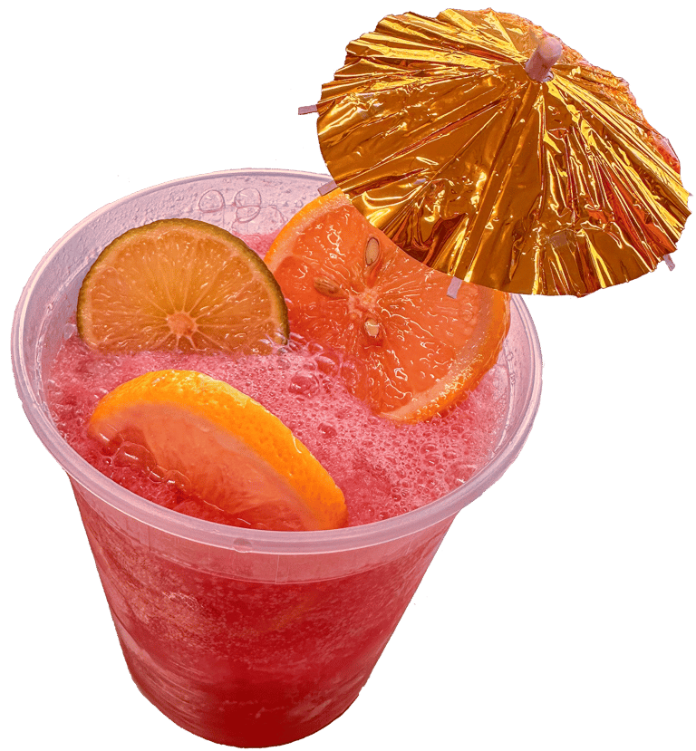 This vibrant beverage begins with a fresh citrus base, expertly blended in our custom mixer to create a smooth and frothy texture. Each sip bursts with tropical flavors, enhanced by pure water and ice, cane sugar, REAL FRUIT PUREES and syrups.